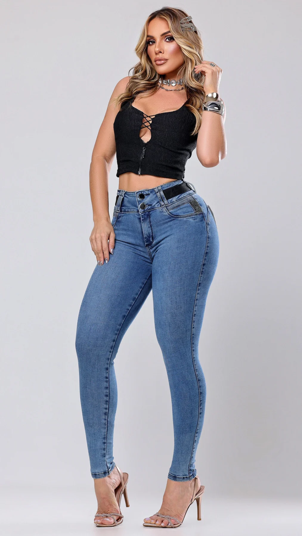 Calça jeans feminina com modelagem cigarrete que realça suas curvas com perfeição. Cintura alta modeladora com elastano premium. Conforto e estilo do 36 ao 48.
